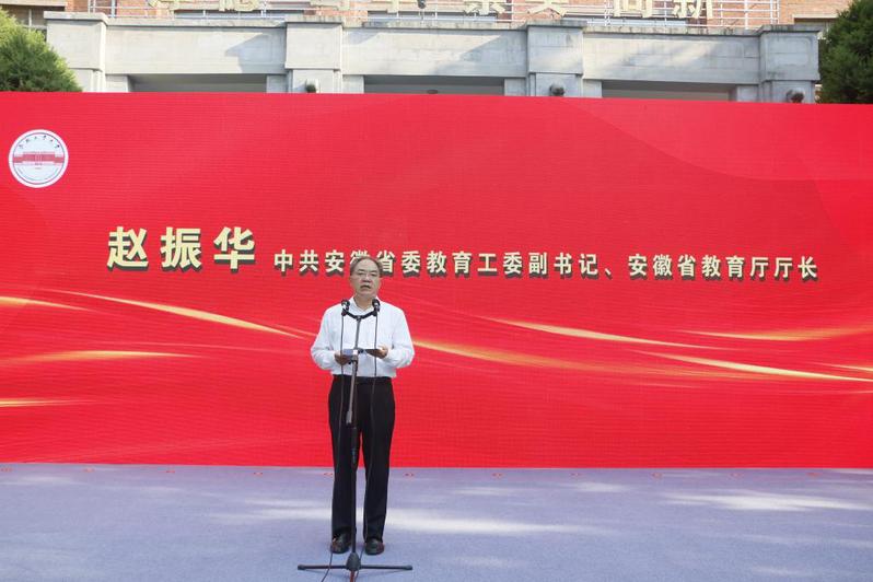 赵振华代表安徽省委教育工委、教育厅对学校地质博物馆在标志性建筑主教学楼开馆表示热烈祝贺,地质博物馆是安徽省首家高校地质博物馆,是学校深厚历史底蕴的集中体现,是工大人“工业报国”精神的集中展示,将成为学校、乃至安徽高等教育新的靓丽名片。希望学校充分发挥地质博物馆在人才培养、科学研究、社会服务、文化传承创新等方面的重要作用,坚持面向师生、面向民众、面向国内高校开展科学研究与科普交流,不断丰富馆藏资源,深入挖掘地质学科的深厚底蕴,加强地球科学的科普教育,激励师生员工争做五大发展理念的忠实践行者,助力学校国际知名的研究型高水平大学和一批世界一流学科建设,共同为建设现代化美好安徽、绿水青山的美好未来作出更大的成绩。祝愿学校地质博物馆办出特色、办出水平,将学校深厚的历史底蕴、优良的办学传统和鲜明的人才培养特色发扬光大。