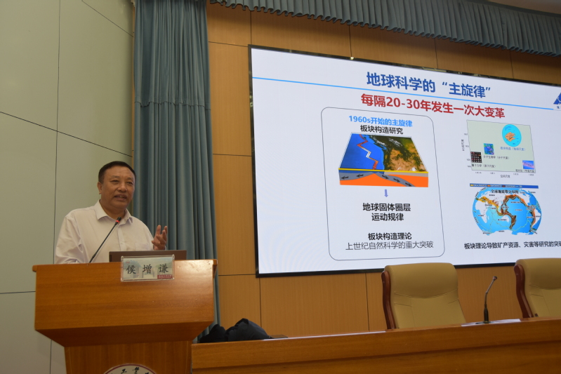 9月29日上午,地球科学领域著名科学家、国家自然科学基金委员会副主任、中国科学院院士侯增谦应邀来校作题为《地球科学发展战略与前瞻布局》的学术报告。校长梁樑主持报告会。