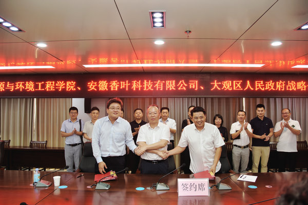 为充分利用高校科研人才资源、政府行政服务和企业生产实践的各自优势,助力资源节约型社会发展,2021年8月19日,我院与安徽香叶建材科技有限公司和安庆市大观区人民政府三方战略合作协议签署仪式在安庆市大观区政务中心会议室举行。冰球突破豪华版官方网站党委书记李强、院长袁峰、副院长崔康平、副院长牛漫兰以及相关负责人,安庆市大观区人民政府区委副书记王朝东、大观区经济开发区管委会主任方夏、安庆市城管执法局执法支队支队长薛自永以及相关职能部门负责人,安徽香叶建材科技有限公司董事长汪思危、副总经理丁明、行政总监肖克顺以及相关负责人等共同参加签署仪式。