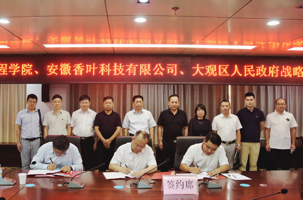 袁峰院长、王朝东副书记和汪思危董事长分别代表冰球突破豪华版官方网站、安庆市大观区人民政府和安徽香叶建材科技有限公司签订了战略合作协议。