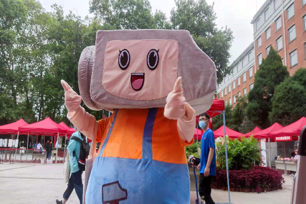 27日上午八点整,迎新工作正式开始。北门广场帐篷处,辅导员老师与学长学姐耐心等待新生的到来,为他们介绍报道流程,送上开学的祝福。精心准备的新生礼包排列有序,校园卡与宿舍钥匙包装整齐,“资环小锤锤”热情活泼。主教大厅中,专业班级分区报道,收发材料井然有序。