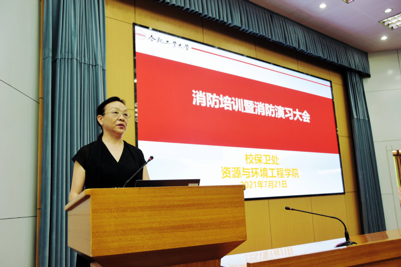 培训会议由资环学院党委书记李强主持,并对强调了此次开展消防安全培训暨消防演习的重要性,对我院消防安全工作提出了要求。随后实验室中心副主任任升莲汇报了学院近期消防工作的进展与成效,并展现常见问题,提醒大家多多注意。