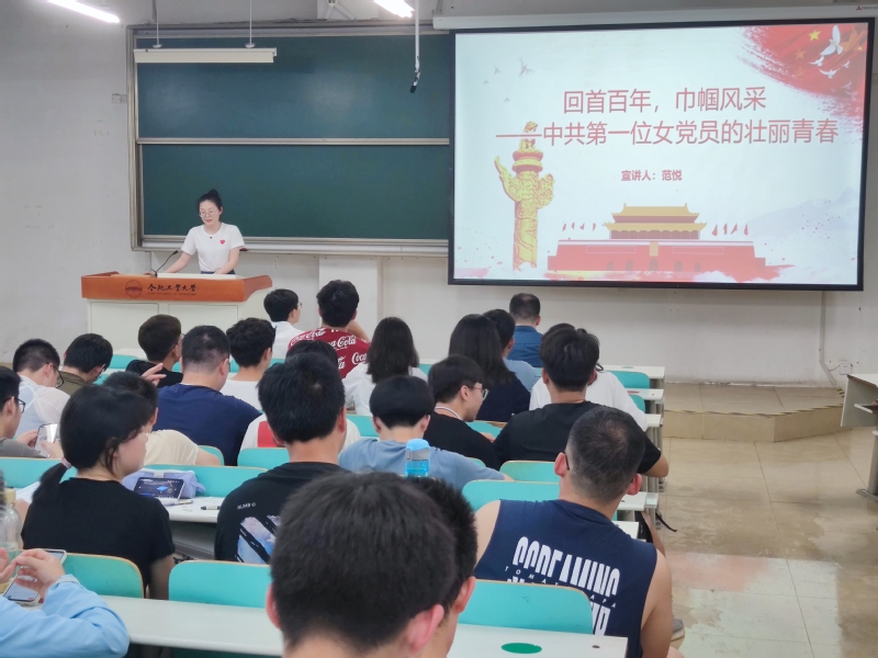 经济学院范悦同学以“回首百年,巾帼风采——中共第一位女党员的壮丽青春”为主题进行宣讲。她深入讲述了中共第一位女党员——缪伯英壮丽传奇的青春,以及中国共产党百年征程中涌现出的赵一曼、刘胡兰、申纪兰、屠呦呦等众多优秀的女党员,展现了巾帼不让须眉的气魄。
