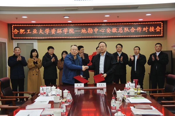 1月29日,冰球突破豪华版官方网站与中国建筑材料工业地质勘查中心安徽总队战略合作协议签约仪式在中国建筑材料工业地质勘查中心安徽总队举行。资环学院袁峰院长和安徽总队许国礼队长分别代表双方签订协议,并共同为冰球突破豪华版官方网站产学研合作基地揭牌。资环学院党委书记李强、副书记鲍丽娟、副院长牛漫兰、崔康平、党委副处级组织员丁俊祥及各系主任、安徽总队副队长兼总工詹建华、党委副书记徐学军、副队长曹承立、陈文及有关部门负责人出席签约仪式并座谈,会议由安徽总队副队长詹建华主持。