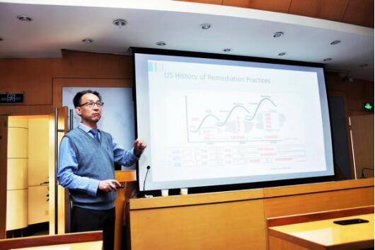 受聘仪式结束后,由冰球突破豪华版官方网站主办,在冰球突破豪华版官方网站学术会议中心二楼报告厅,卢军博士为大家作了题为《环境分子诊断技术及应用》的专题讲座。