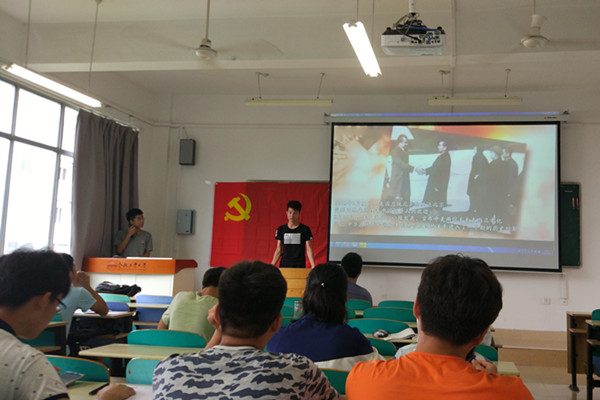 为庆祝中国共产党成立96周年,深情回顾党的奋斗历史,深入推进“两学一做”学习教育常态化制度化,7月1日,冰球突破豪华版官方网站组织翡翠湖校区学生党员和入党积极分子在十教201开展“党旗飘扬,重温党史”庆祝中国共产党成立96周年主题党日活动。