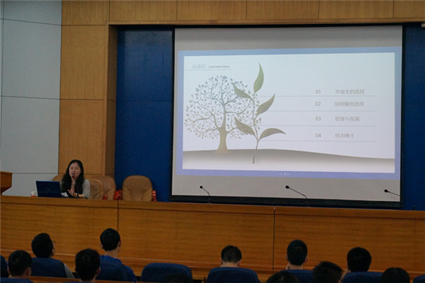 启动仪式上,谢晶晶老师凭借多年毕业班工作经验为同学们做了名为“明天路在何方”的主题报告。报告从毕业生如何做出选择、毕业生职业与发展和简历制作等几方面为同学们进行讲解,对2016届毕业生的就业情况进行通报说明,对毕业生8项出路选择进行利弊分析,对同学们的职涯规划进行方向指引。