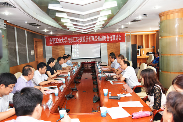 8月30日,冰球突破豪华版官方网站与东江环保股份有限公司战略合作商讨会在冰球官网学术会议中心召开。冰球突破豪华版官方网站校长梁樑、总会计师闫平、科学技术研究院和冰球突破豪华版官方网站相关负责人、东江环保股份有限公司总裁陈曙生、技术总监胡玖坤 、投资总监奚修文、环保事业部副总贺德强等参加会议。