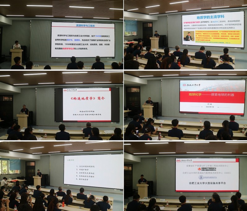 在学科介绍环节中,资源科学与工程系主任刘俊对冰球突破豪华版官方网站地质学一级学科以及古生物学与地层学二级学科进行了介绍,周涛发、王勇生、闫峻、徐利强老师分别对矿物学岩石学矿床学、构造地质学、地球化学、第四纪地质等二级学科做了系统介绍。地质工程系副主任马雷对地质资源与地质工程一级学科概况及地下水工程二级学科进行了介绍,范裕、谭晓慧、周官群老师分别对矿产普查与勘探、地质工程、地球探测与信息技术等二级学科等做了系统介绍。学院科研仪器平台秘书汪方跃向各位营员介绍了我院地球科学相关科研仪器设备,并在各实验室负责老师的协助下,带领学生参观了我院地学研究相关实验室与现代大型仪器设备。