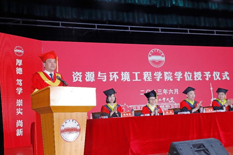 校十佳大学生、地理信息科学专业华松,环境科学与工程专业研究生徐凯杰分别作为本科生、研究生毕业生代表发言,他们深情回顾了校园生活的点点滴滴,对母校的悉心培养、老师的辛勤指导和父母的无私奉献表达了感激之情,并表示将永念母校、永怀感恩、锤炼品德、实学实干,以聪明才智贡献国家,以开拓进取服务社会,用优异成绩回馈母校。