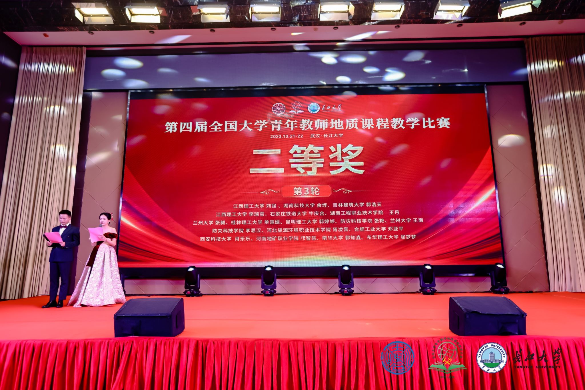 10月20-22日,第四届全国大学青年教师地质课程教学比赛暨中国地质学会地质教育研究分会2023年学术年会在长江大学武汉校区举行。经过激烈的竞争,我院安慰和邓亚平两位青年教师均荣获二等奖,取得优异成绩,为学校赢得了荣誉。资源科学与工程系主任刘俊教授应邀担任本次课程教学比赛评委,张达玉教授在学术年会上作教研学术报告。