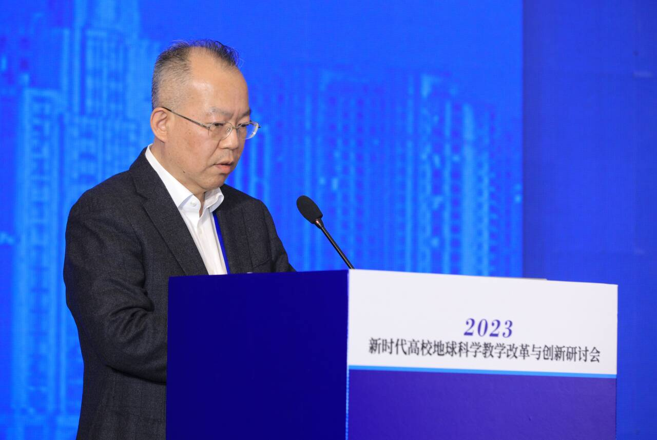 陈琪琳就推进地球科学课程建设与教学改革提出了三点意见,一是扎实推动习近平新时代中国特色社会主义思想和党的二十大精神进教材进课堂进头脑,不断提升地球科学课程育人效果;二是着力推进课程、教师、教材和实践等核心要素建设,不断提高人才培养质量;三是着力推进数字化技术创新和应用,为课程教材建设赋能。