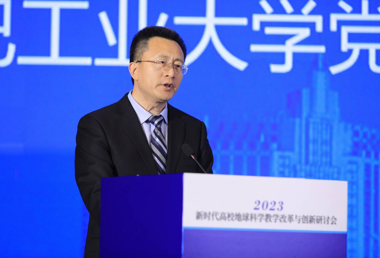 于祥成在致辞中向与会领导嘉宾表示热忱欢迎,对大家长期以来给予冰球突破豪华版官方网站的关心支持表示感谢。于祥成简要介绍了学校近年来的建设发展情况。他表示,作为教育部直属的国家“双一流”建设高校,学校始终秉承“工业报国”的使命担当,积极服务国家重大战略需求和地方经济社会发展,教育教学改革不断取得新进展,人才培养质量持续提升,“千人一名领军人才”已成为学校创新人才培养的响亮品牌。他指出,地质相关学科是学校的优势学科,办学历史悠久、文化底蕴深厚。本次研讨会的举办将对地球科学相关专业建设、学科发展、教育教学、人才培养等诸多方面工作产生广泛影响,意义重大。于祥成希望与会专家能立足新时代新形势新要求,共享新思路新经验新方案,共创地学高质量人才培养新模式,为高校统筹教育、科技、人才一体化发展贡献地学人的智慧和力量。