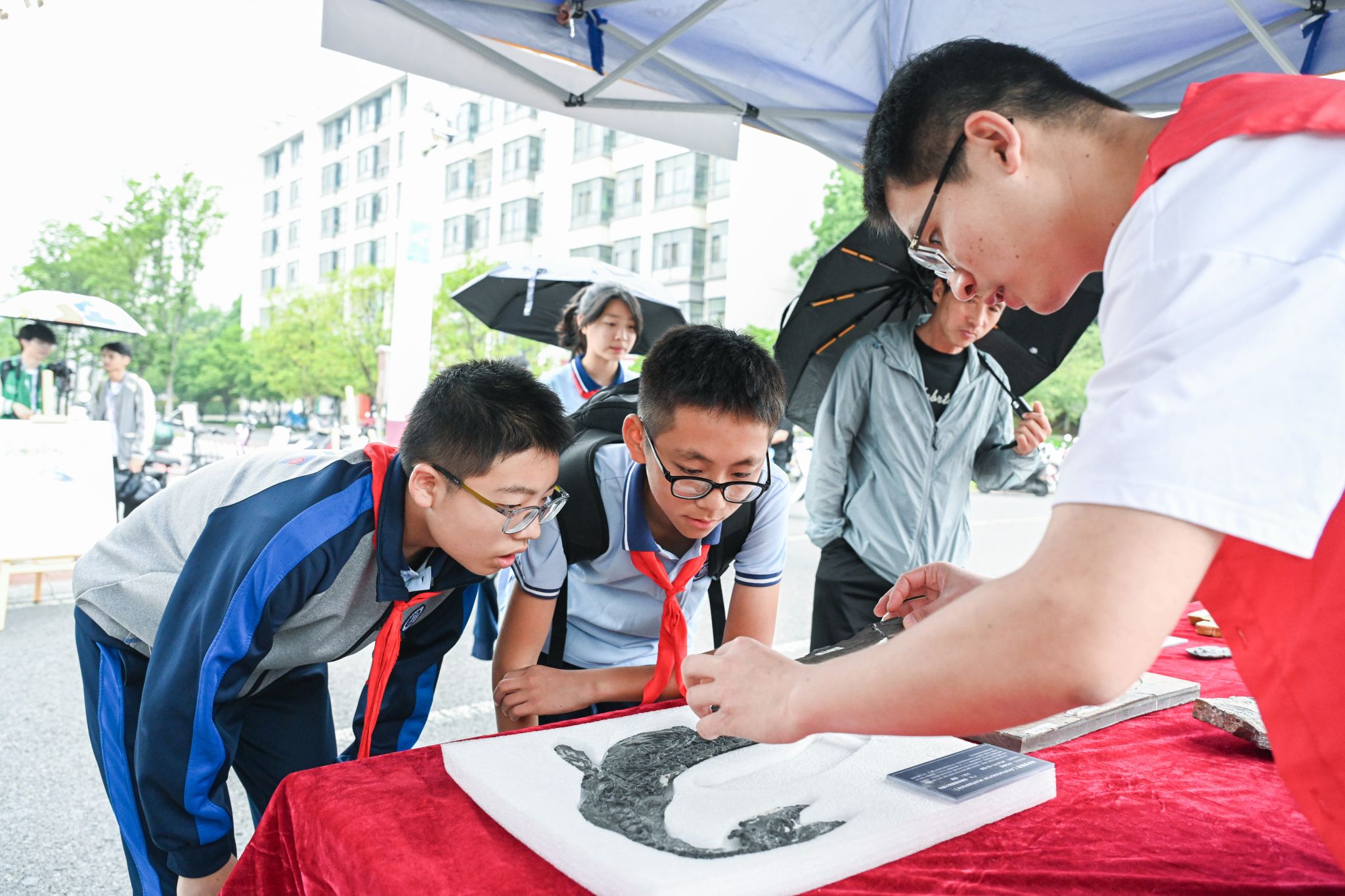本次地球文化节以“探索地球奥秘,共建生态文明,共享绿色未来”为主题,展出了 “看山川锦绣,书绮丽未来 ”摄影作品、“洪荒印记,生命寻踪”古生物化石、“与鳄同行-揭秘扬子鳄的前世今生”安徽省扬子鳄国家级自然保护区展品、“携手节能减排,共创碧海蓝天”节能减排校赛优秀作品,为师生们安排了“环保设备‘云’上看”VR环保体验、“探自然奥秘,寻清渠如许”科普实验、“但愿人长久,‘签’里共婵娟”叶脉书签制作、“赏花正当时-拾花为笔,共绘自然”DIY手工制作、“普及低碳生活,共创文明校园”科普游戏。展区之外,还组织了专家讲座、安徽省扬子鳄国家级自然保护区“生态行”实践等系列活动,彰显生态环境专业特色、传播地球科学知识,鼓励青年学子积极践行生态文明理念,引导学生利用专业所学,为建设人与自然和谐共生的现代化贡献青春力量。