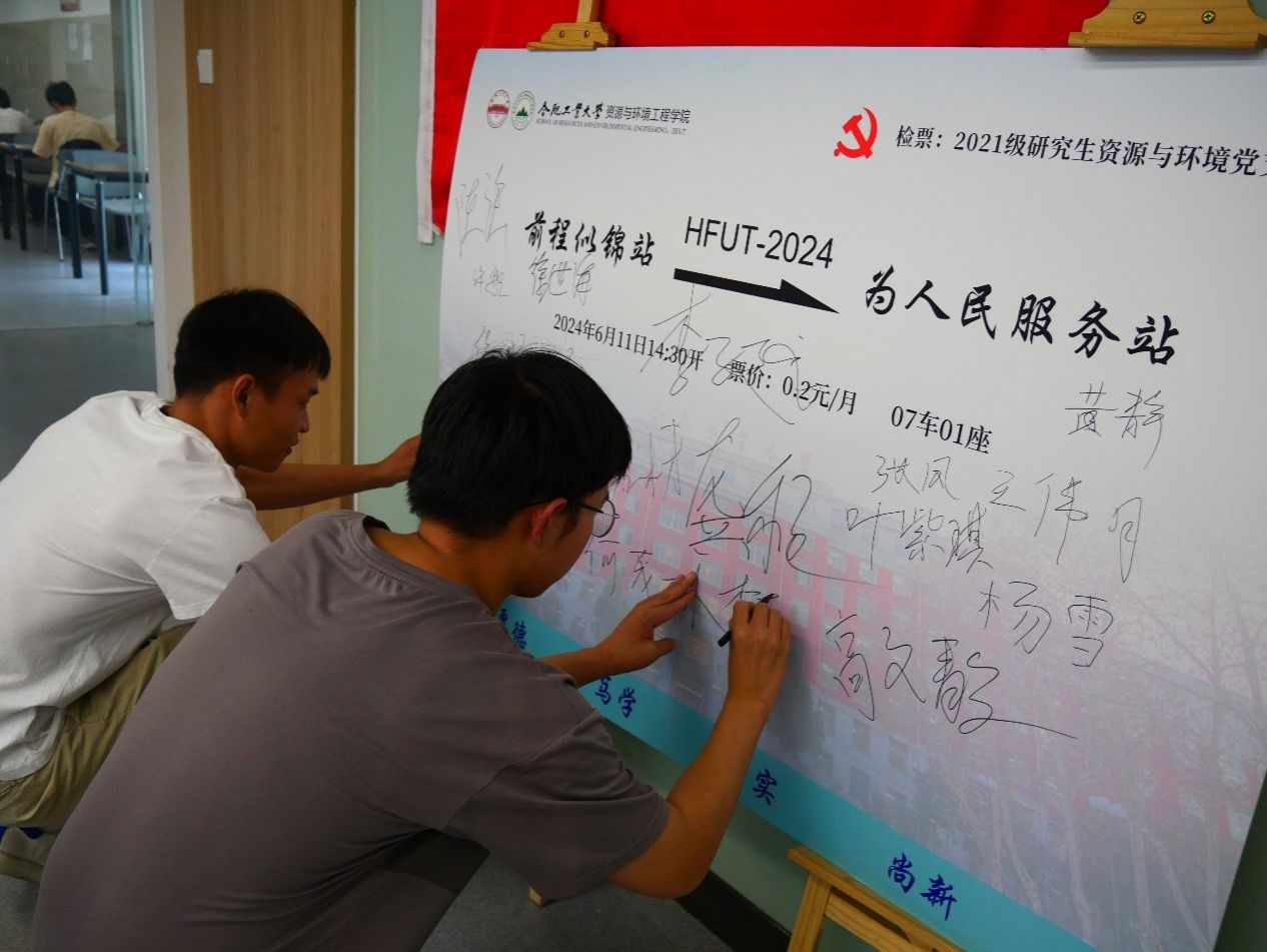 心怀炽热,青春启航。活动最后,毕业生党员在支部定制的通往“为人民服务站”的“车票”上签名。大家纷纷表示,此次主题党日活动进一步强化了自身党员身份意识,砥砺毕业生党员以更加昂扬的精神面貌、更加坚定的理想信念踏入新的人生征程,牢记初心使命,力行许党报国。