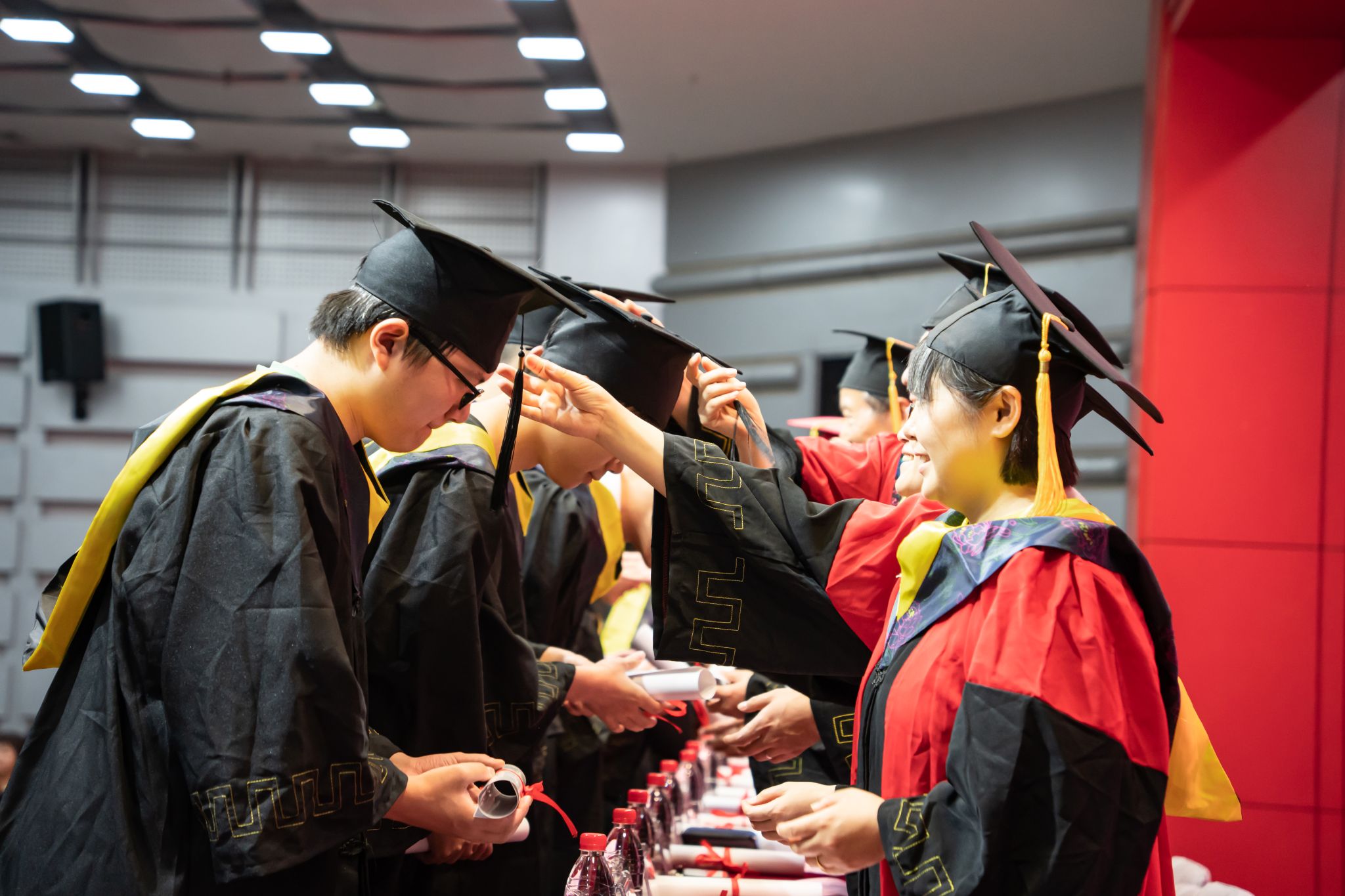 仪式在庄严隆重的国歌声中拉开序幕。学院院长袁峰宣读了《冰球突破豪华版官方网站2024届毕业生学位授予决定》,与会领导和老师为143名学士学位获得者、138名硕士学位获得者和12名博士学位获得者颁发了学位证书、扶正流苏,并与学生合影留念。