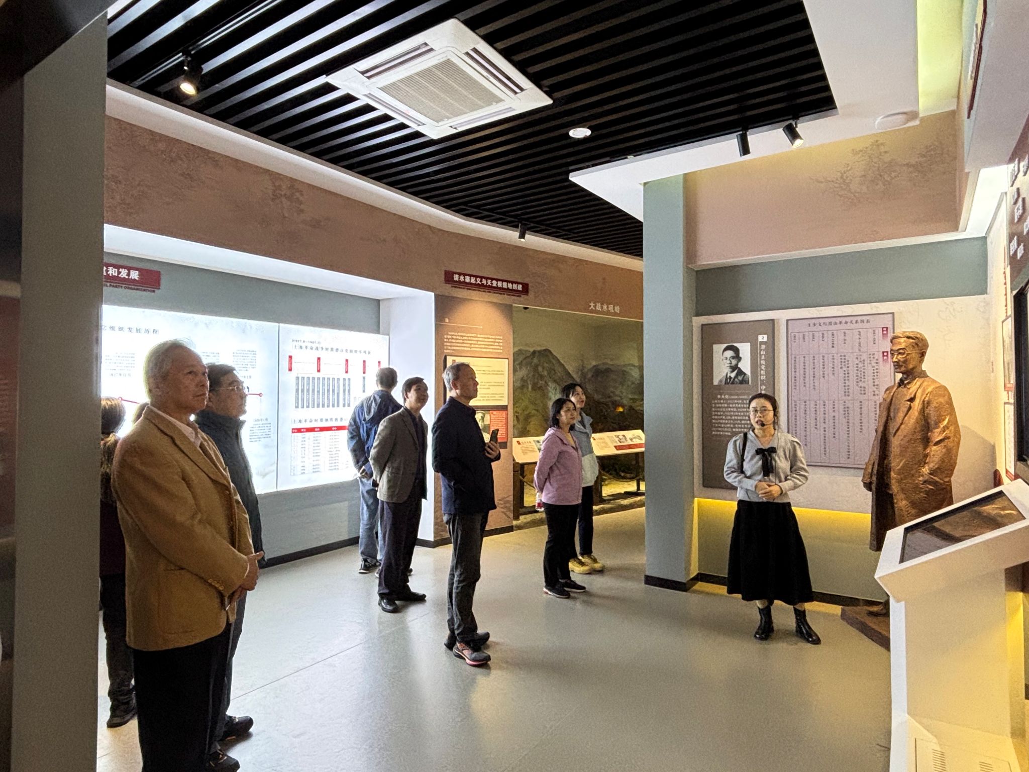 考察团一行首先来到红源潜山革命历史陈列馆进行参观。红源潜山革命历史陈列馆是潜山红色资源保护利用系列工程重要组成部分,展馆布展面积720平方米,分序厅、星星之火、红旗漫卷、中流砥柱、胜利旗帜、尾厅六个部分,展馆借助油画、场景、投影、情景化雕塑等现代多媒体展示技术,再现了红源潜山革命历史画卷。