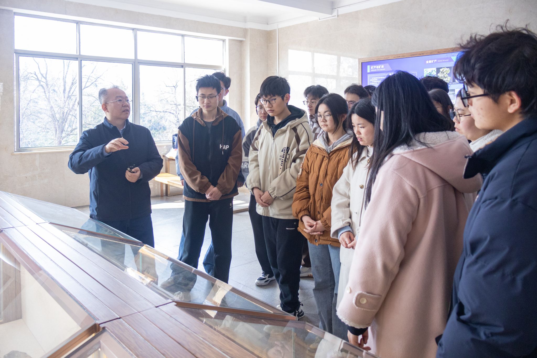 在互动环节,师生们围坐在一起,结合学生存在的思想困惑和成长需求进行了深入的交流探讨。同学们纷纷表示,这不仅是一场鲜活的思政教育课,更是一次深刻的精神洗礼课,既了解到博物馆展品背后的科研印迹,又对地学精神有了更为透彻的领悟。