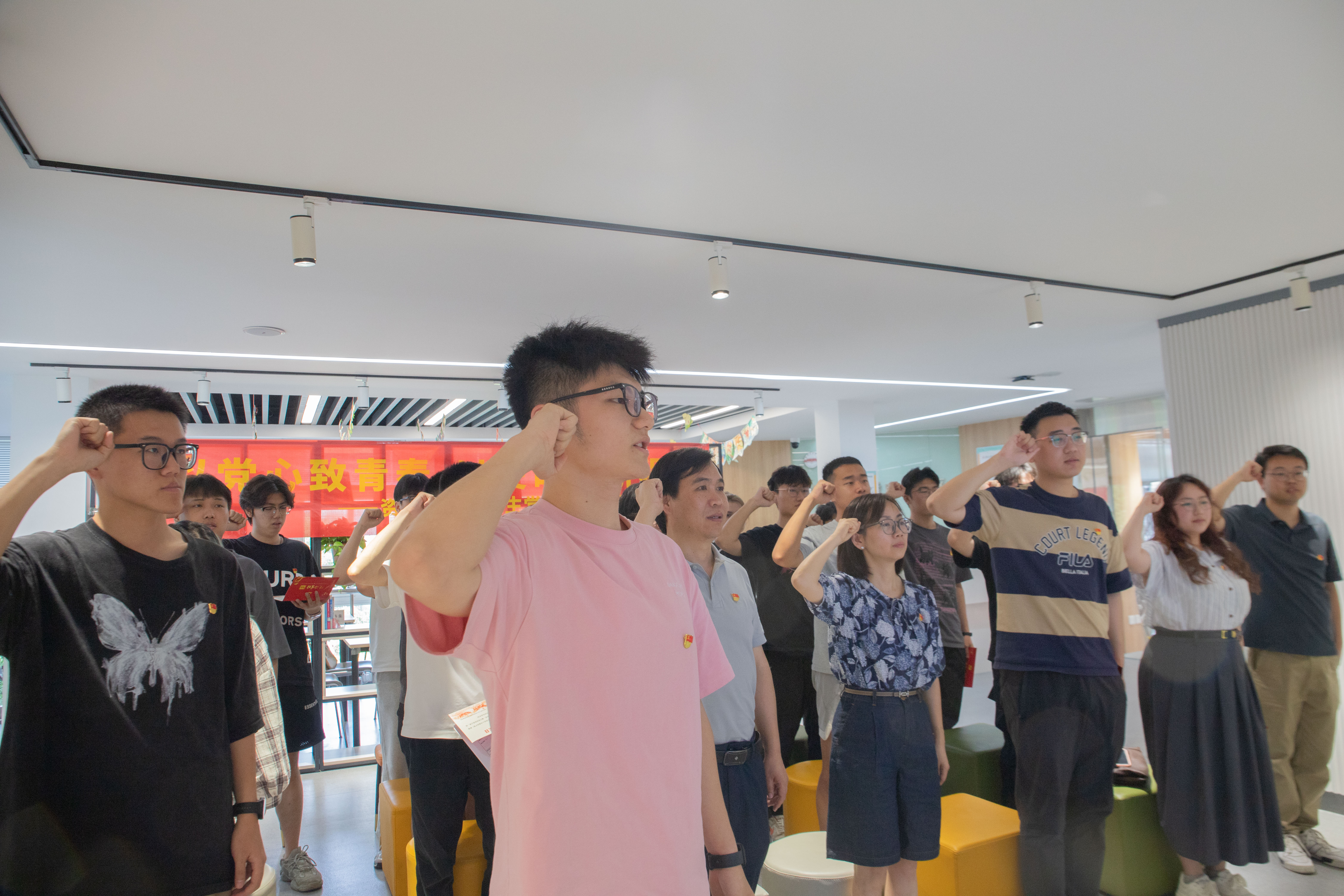 重温一遍入党誓词。全体毕业生党员庄严肃立,高举右拳,在本科生第一党支部周龙笛同学的带领下,齐声宣读入党誓词。铿锵有力的誓言响彻现场,让每一位党员再次感受到入党时的光荣与责任。